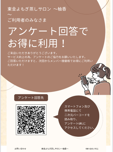 施術後、QRカードを読み込んでいただきアンケートにお答えいただきますと、当日からメンバー様価格でご利用いただけます。